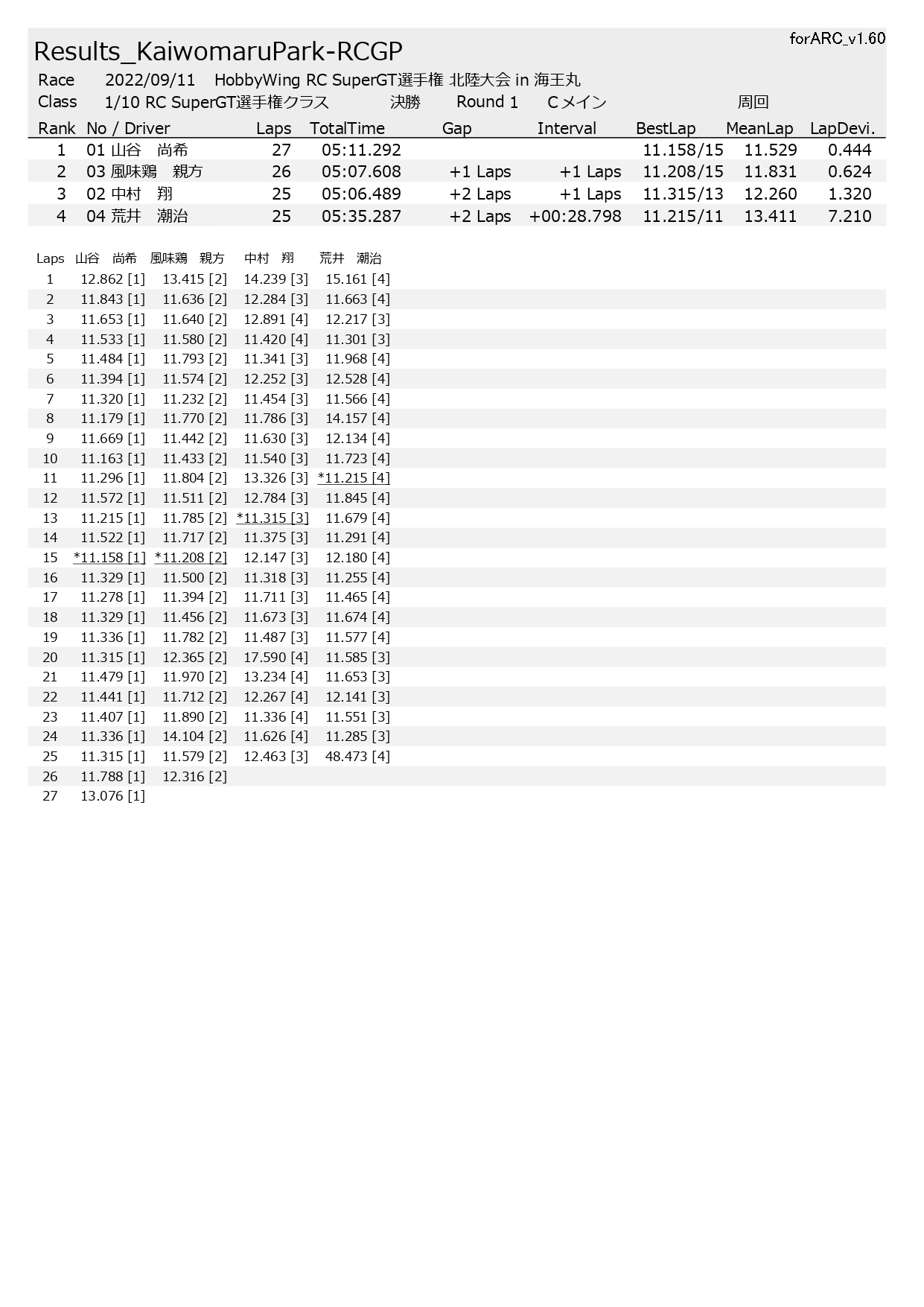 - 2022年09月13日:RC Super GT選手権 S22R2 結果