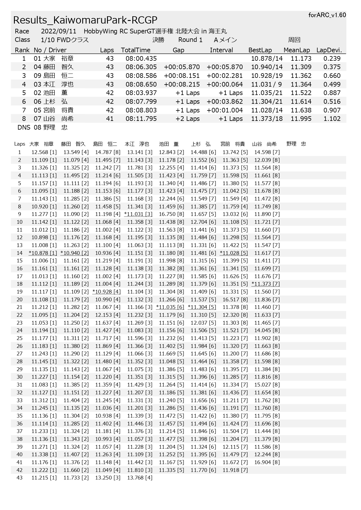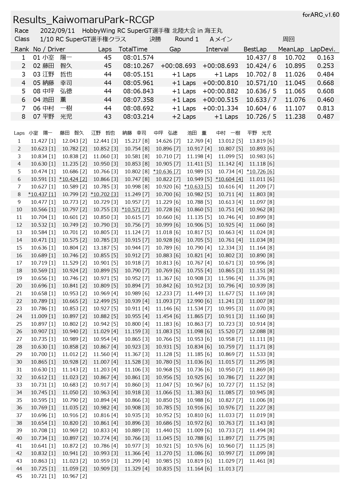 - 2022年09月13日:RC Super GT選手権 S22R2 結果