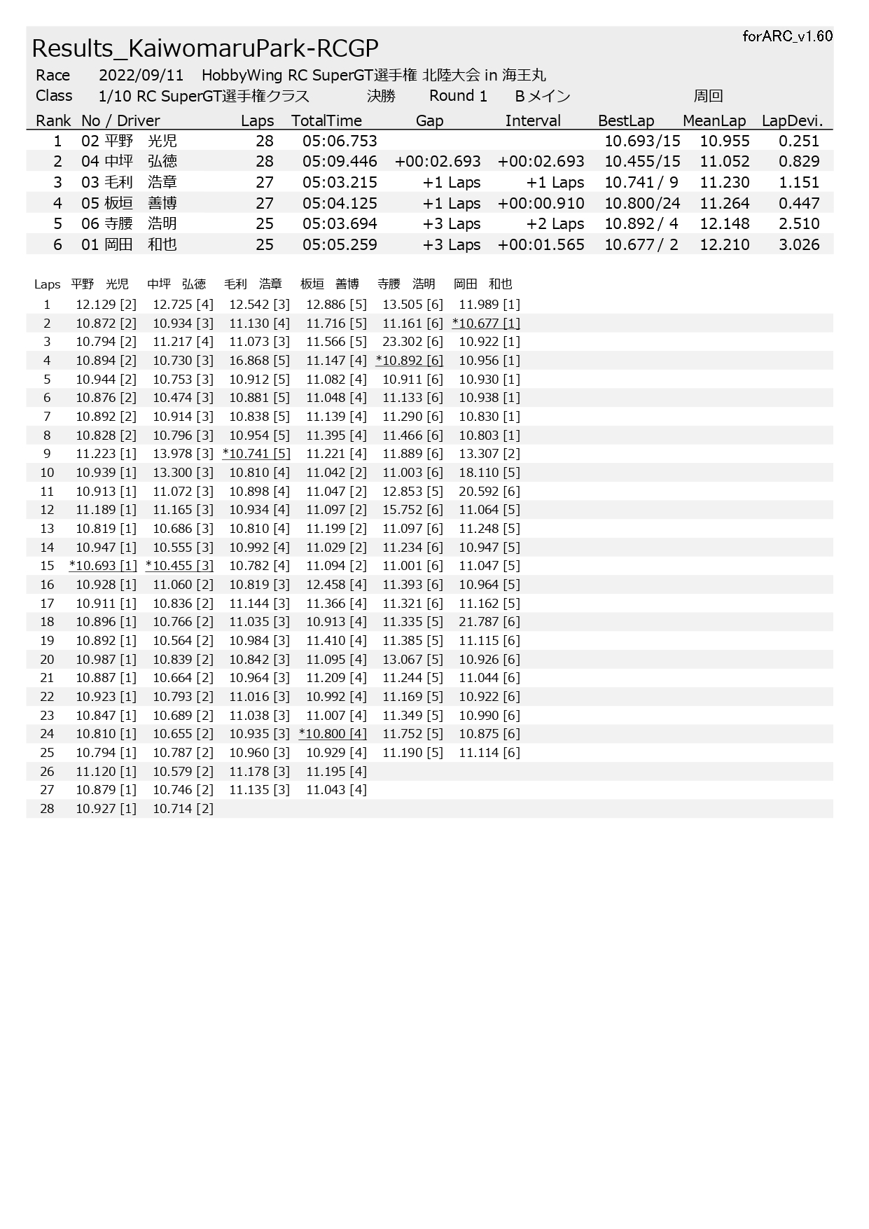 海王丸パーク(非公式)(RC Super GT S22R2 AWD C決勝 結果)
